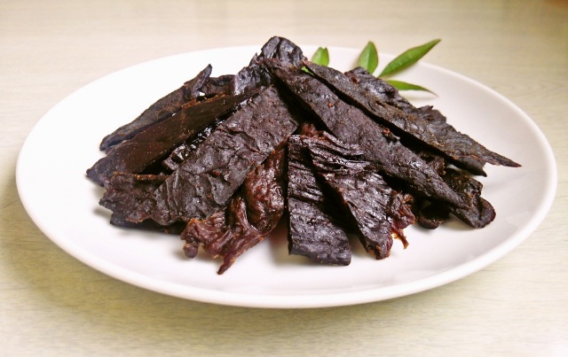 鯨肉を醤油・香辛料で味付けし、ジャーキーに仕上げました。